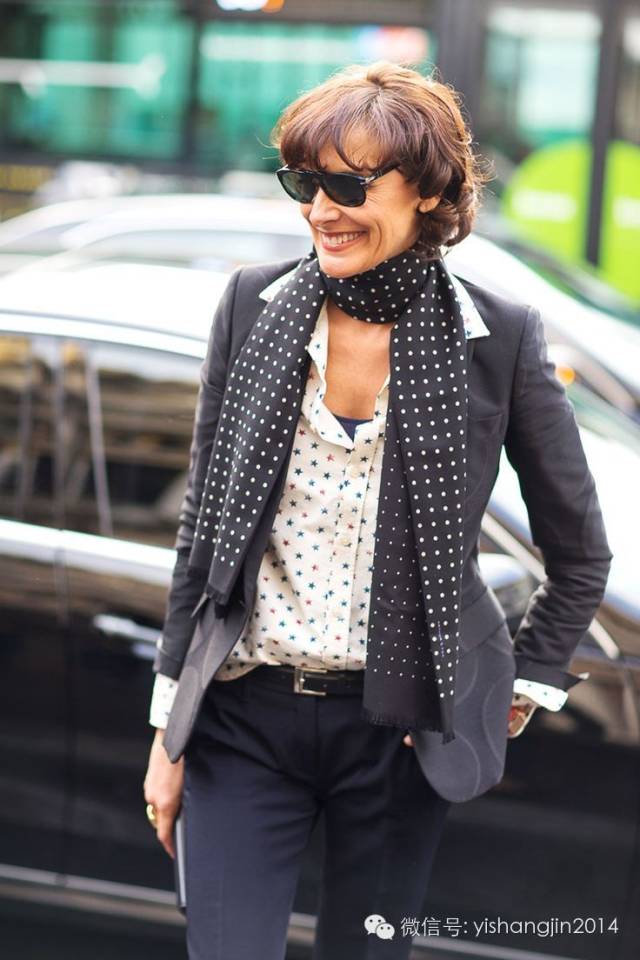 做过这么多期街拍达人,甜甜橙发现有的女人一天换一套,恨不能把所有的流行元素都表达出来,可她一点都不优雅,有的女人,像伊娜,像女导科波拉,简单的衬衫锥裤站在那里你就觉得她好优雅。所以优雅真的是综合教养,与钱无关。