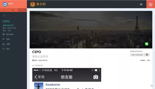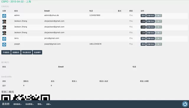 后台的功能从简单的报名信息收集,到团体报名签到等,一点一点的堆起来。