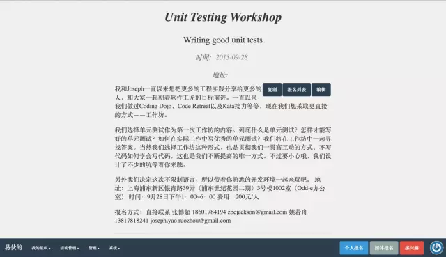 当然,我们在开发易伙的过程中也是充分贯彻了不要脸的美德。刚开始的时候这只是一个极其简单的发活动的网站。